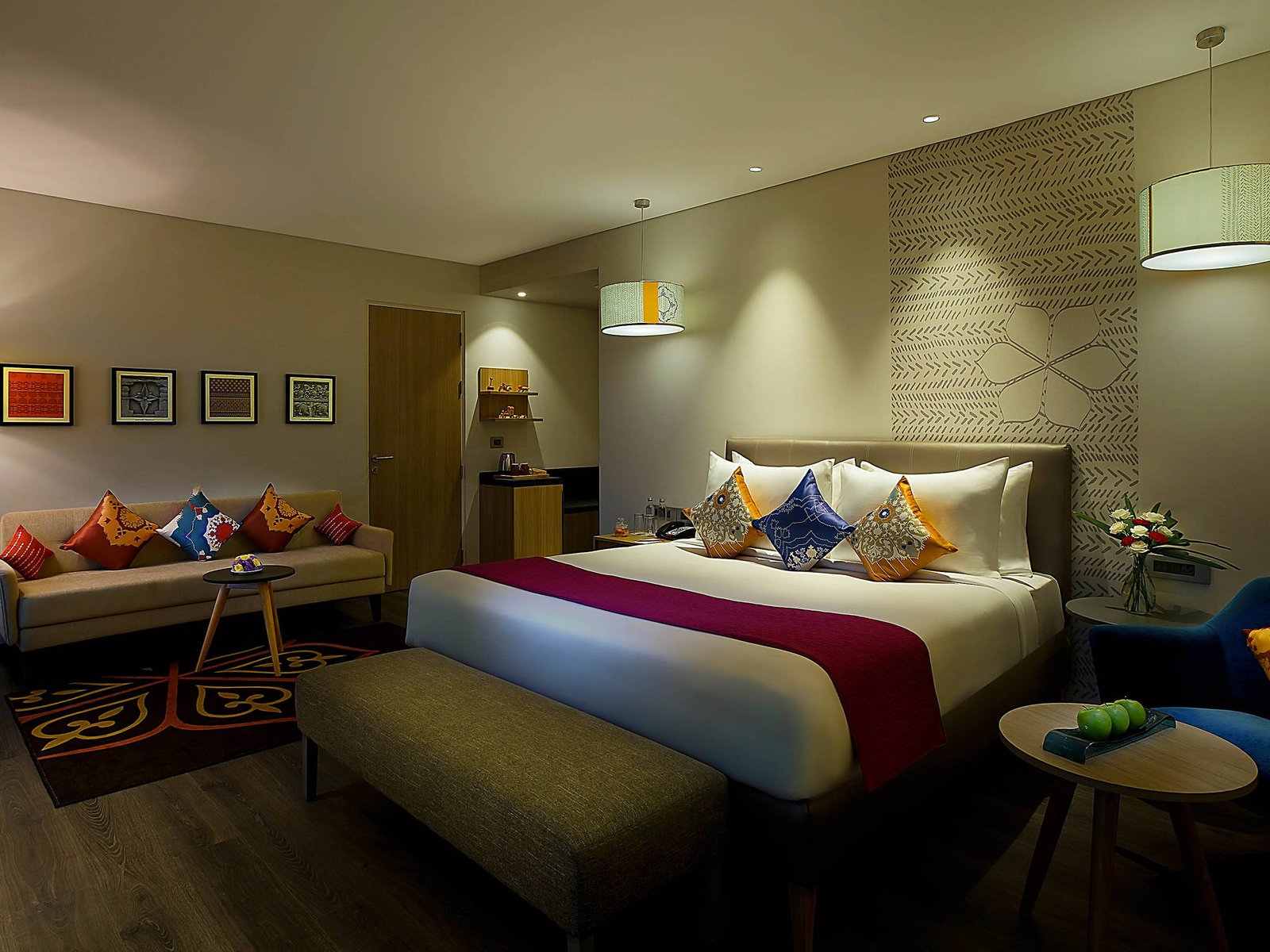 Minutes away from Mysore Palace & Mysore Zoo, Grand Mercure Mysore is located in the heart of the city on the famous Dasara Procession pathway. The hotel offers 146 rooms and suites, a rooftop swimming pool, gym, all day dining restaurant, in-house bar, free WiFi, Kids play area and Spa. Enjoy delicious North Indian cuisine at our rooftop Specialty Restaurant \"By the Blue\". Our well-equipped Banquets and Meeting Rooms are designed to suit all your needs to host business & social gatherings. \"Welcome to Grand Mercure Mysore! Located on the legendary Dassara Procession Pathway and in close proximity to all tourist destinations, it makes the perfect setting for exploring this rich and diverse city.\"