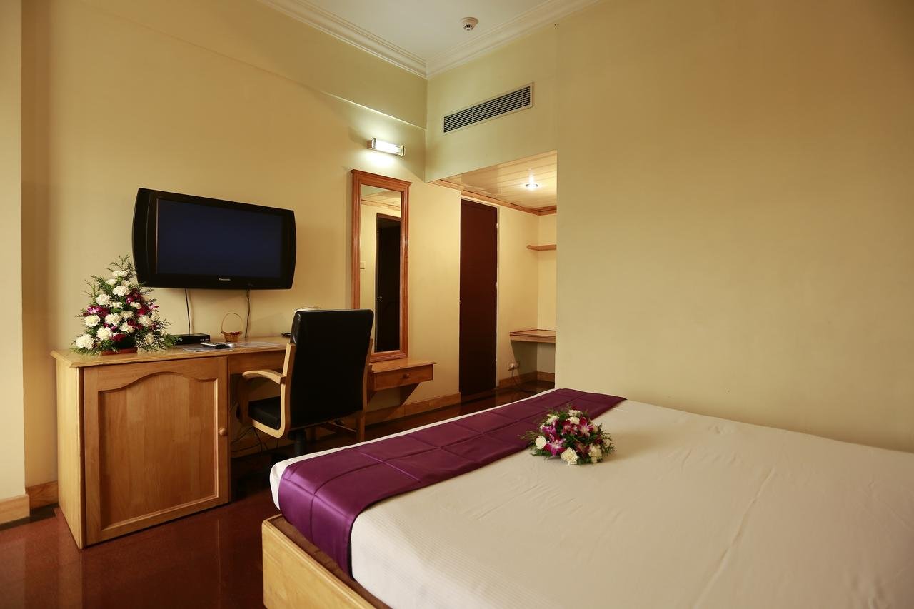 Centrally located in Cochin, the 4-star Hotel Presidency is only 500 metres from the popular shopping area of M.G. Road. A short 2-minute walk from Ernakulam Town Railway Station, it offers spa treatments, a fitness centre and an outdoor pool. Five dining options are offered at this hotel. The air-conditioned rooms at Hotel Presidency are all equipped with a flat-screen TV, minibar and personal safe. Suites also include a separate living room with a sofa set. En suite bathrooms have either a shower or a bathtub. Indian and international cuisines , paired with fine wine, are offered at City View Restaurant. Lotus Restaurant serves Continental, North Indian and East Asian dishes. Guests can sample South Indian vegetarian dishes at Dosa World, or enjoy Japanese cuisine at Tokyo Bay. Drinks are available at Diwan Bar. Arrange day trips at the tour desk, or approach the concierge desk for any requests. The hotel also provides meeting rooms, laundry services and a 24-hour front desk. Hotel Presidency is about 23 km from Cochin International Airport. On-site parking is free.