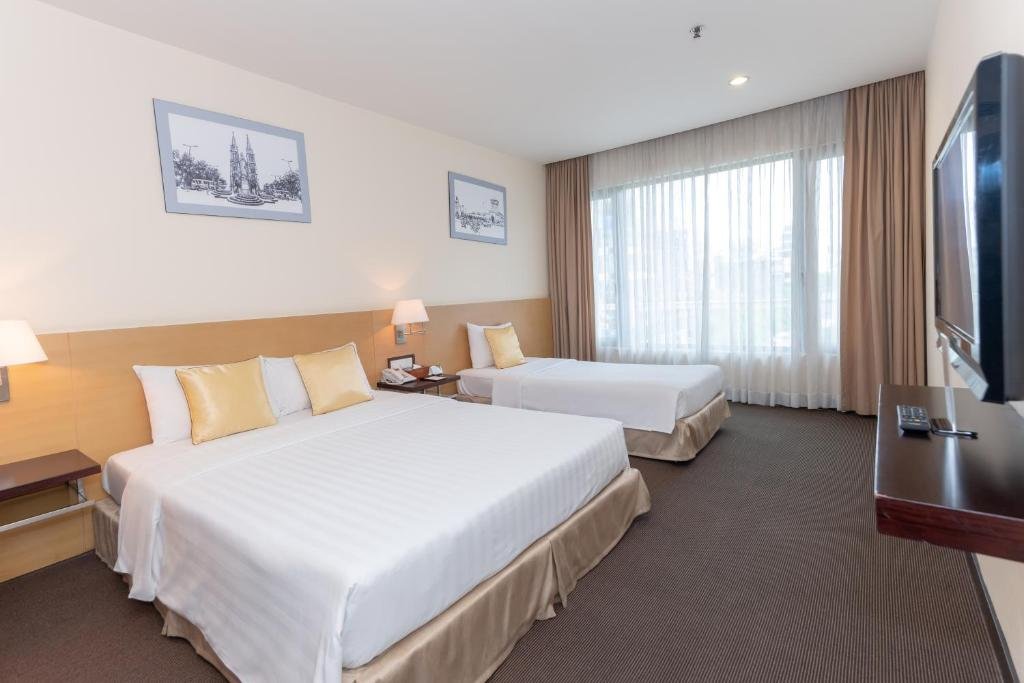 Whether you are looking for a business destination or sophisticated leisure hotel in the heart of Ho Chi Minh city, you cannot go pass Palace Hotel Saigon. Located on a very desired address of the renowned street, Nguyen Hue Boulevard, it takes 8km from Tan Son Nhat International Air-Port, few steps for shopping areas, traditional boutique shops and entertainment venues of Dong Khoi and Nguyen Hue Streets, a walking distance to Saigon River, Ho Chi Minh Status square, Opera House, Ben Thanh market, Ho Chi Minh City town hall, Notre Dame Cathedral and Reunification Palace and many commercial buildings around the corners, let the Palace hotel Saigon charm you throughout your stay.
