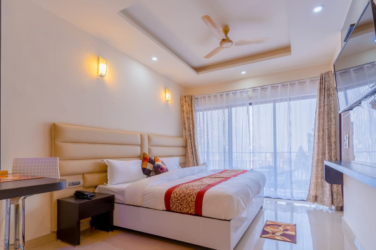 It is the best located resort in Bhimtal with an amazing view of beautiful lake and lush green valley with jaw dropping view of sunrise. No matter how you spend your time in Bhimtal, we make sure it’s unforgettable. Royals Moonlight Resort provides a rooftop restaurant. This 4 star resort offers a 24 hour front desk. The spacious and luxurious designed junior suites are situated on 1st and 2nd floor with an open balcony. The junior suite has a contemporary design and very royal sizing of 400 sq ft. The junior suite has 1 King Size bed, a sitting area with a comfortable sofa, 2 chairs and a coffee table with a rapid high bar chair.