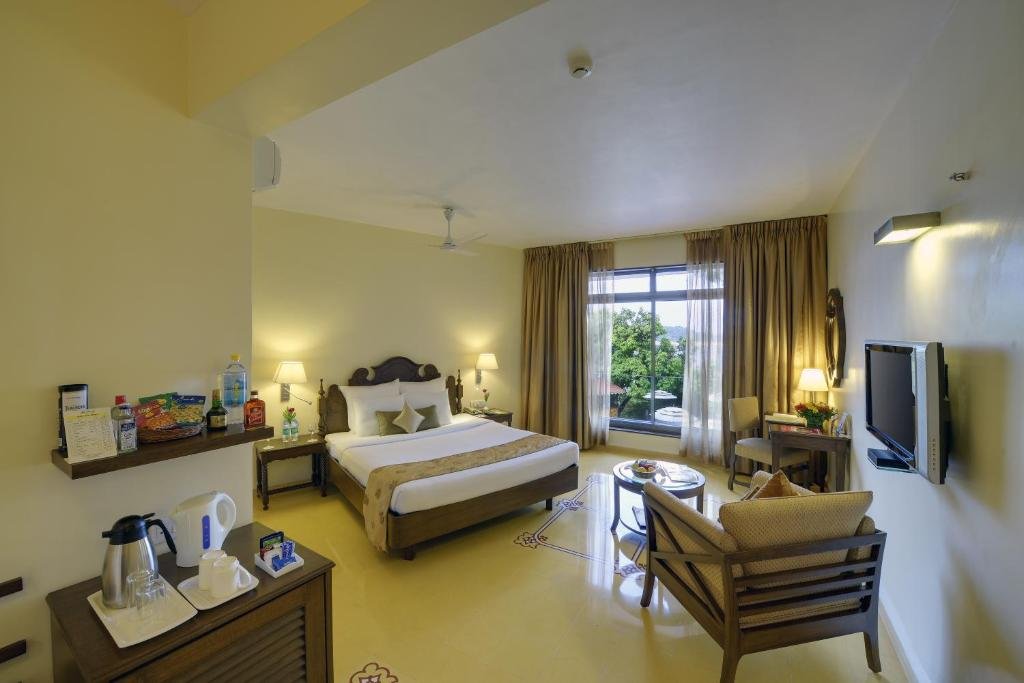 A Goan Boutique Hotel situated in the capital city of Goa in Panjim. Besides being located in one of the world’s most popular holiday destinations, The Crown Goa perched on a hillock has the most breathtaking views of the River Mandovi. Its strategic central location provides easy access to all the local facilities, shopping areas, casinos, beaches and churches. The poolside Hanging Garden Restaurant serves barbeque and Indian dishes with river views. Harbour Cafe offers international cuisine. Room service and a breakfast buffet are available.