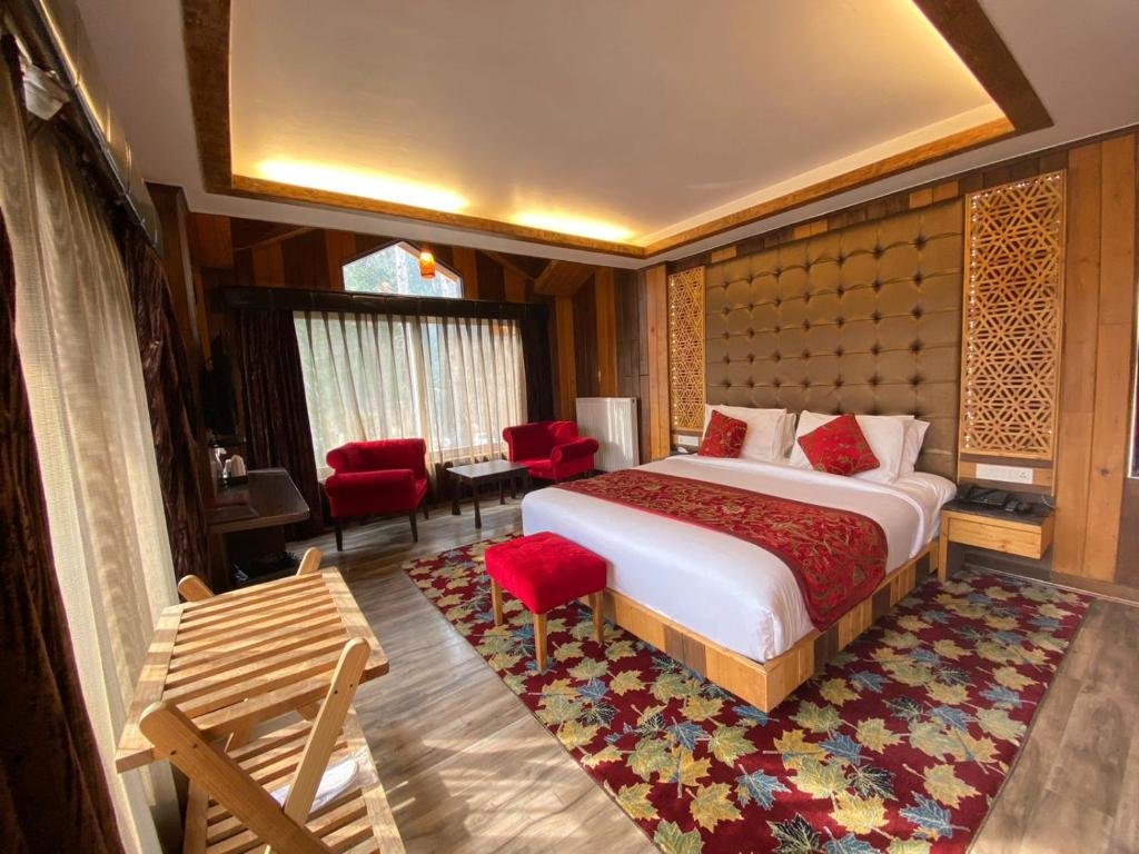 Featuring free WiFi, a hot tub and a children\'s playground, The Rosewood offers accommodation in Gulmarg. Guests can enjoy the on-site restaurant. Free private parking is available on site. The rooms include a flat-screen TV with satellite channels, PS3 and PS2. Rooms come with a private bathroom. Extras include slippers, free toiletries and a hairdryer. There is a 24-hour front desk at the property.